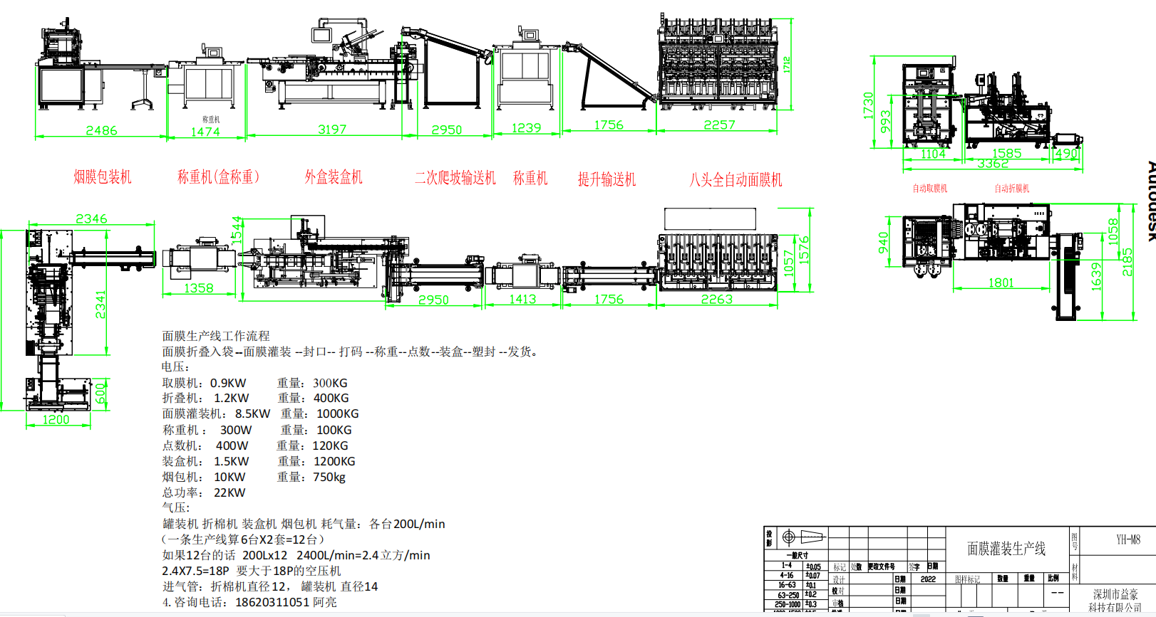 參觀一下益豪科技面膜設備: 八頭面膜生產線案例,多臺面膜生產設備安裝調試